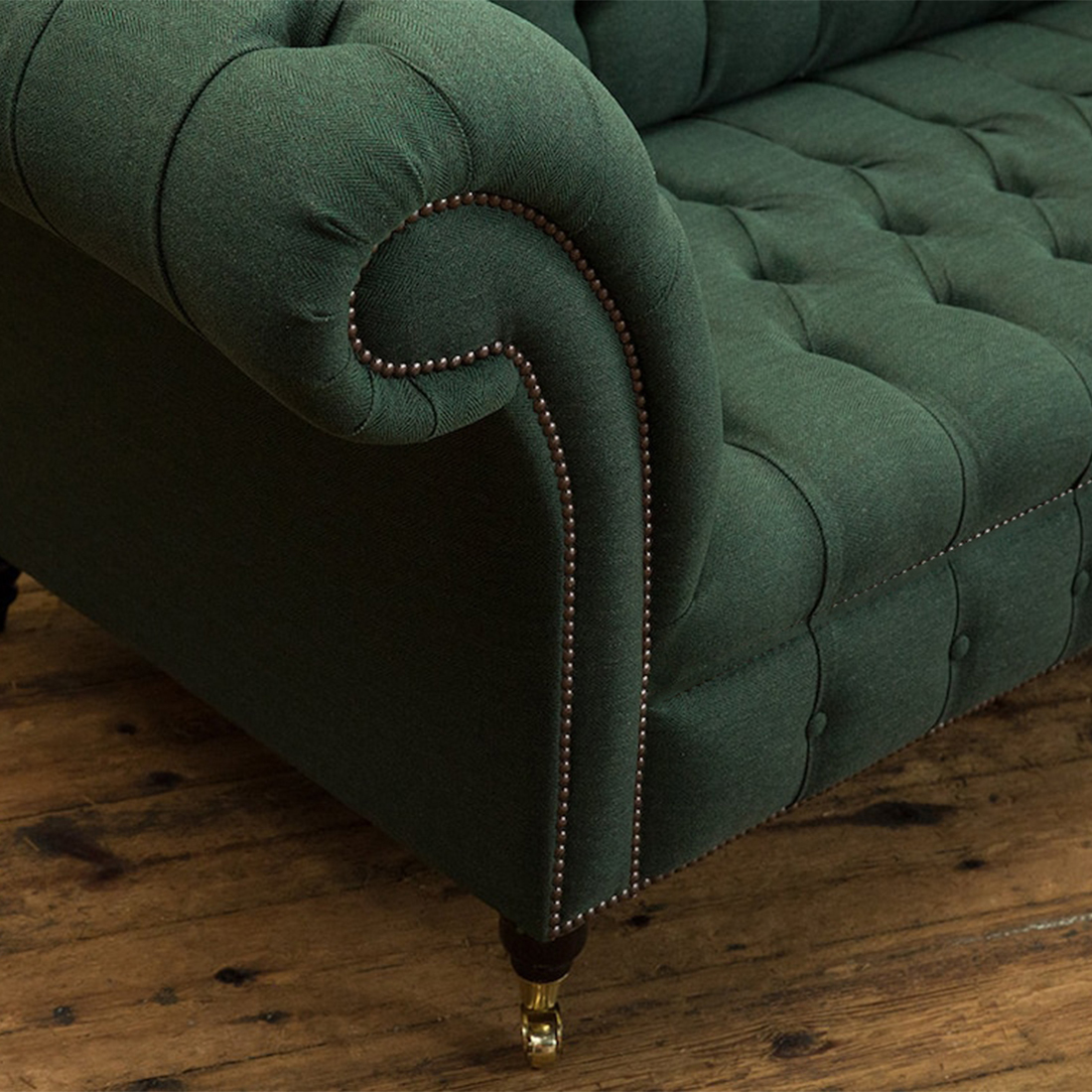 CLASSIC CHESTERFIELD STYLE: Designed with the traditional Chesterfield sofa in mind, this piece hits all the key elements, with deep button tufting, nail head accents, scrolled arms, and turned legs. This is finished with gorgeous upholstery and elegant diamond stitching.PRODUCT DIMENSION: 205 Lx 75 Dx 70H.