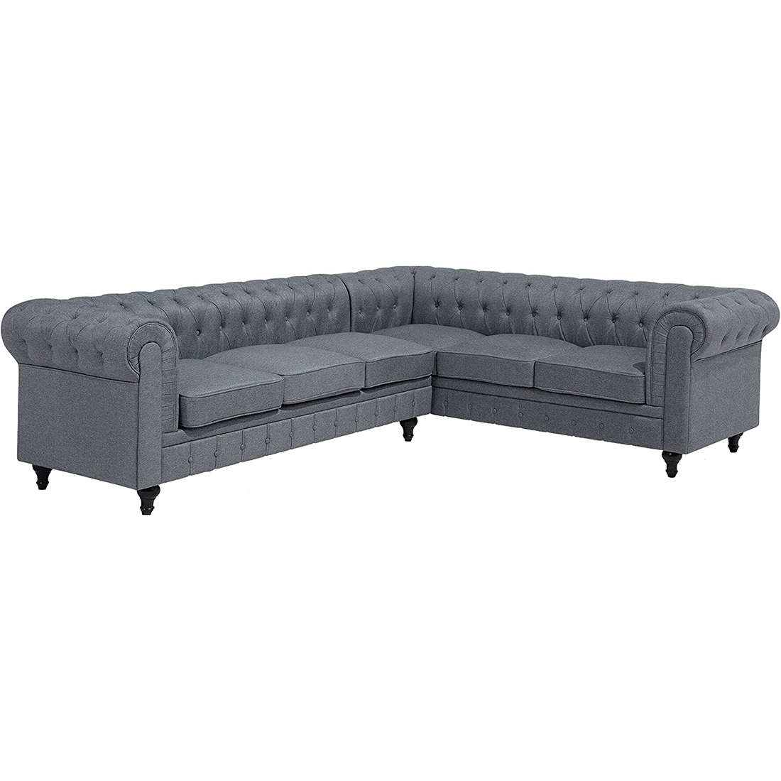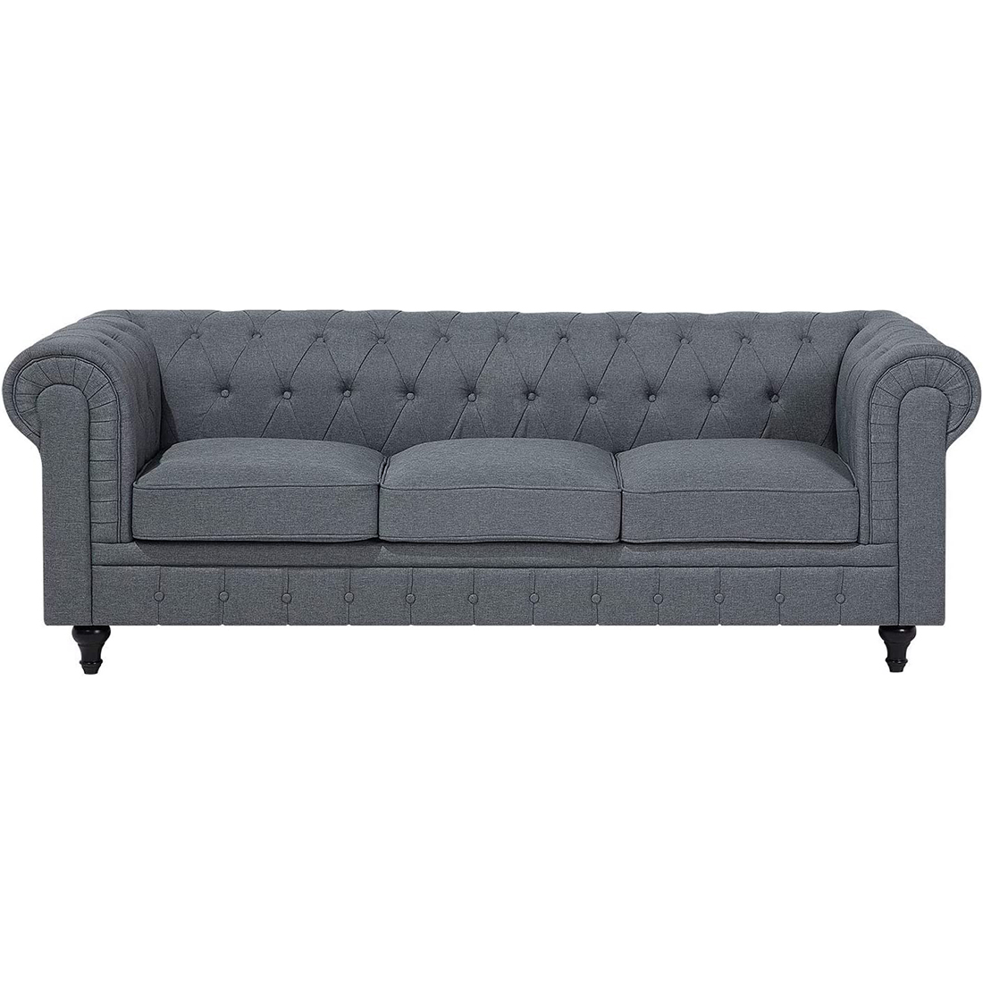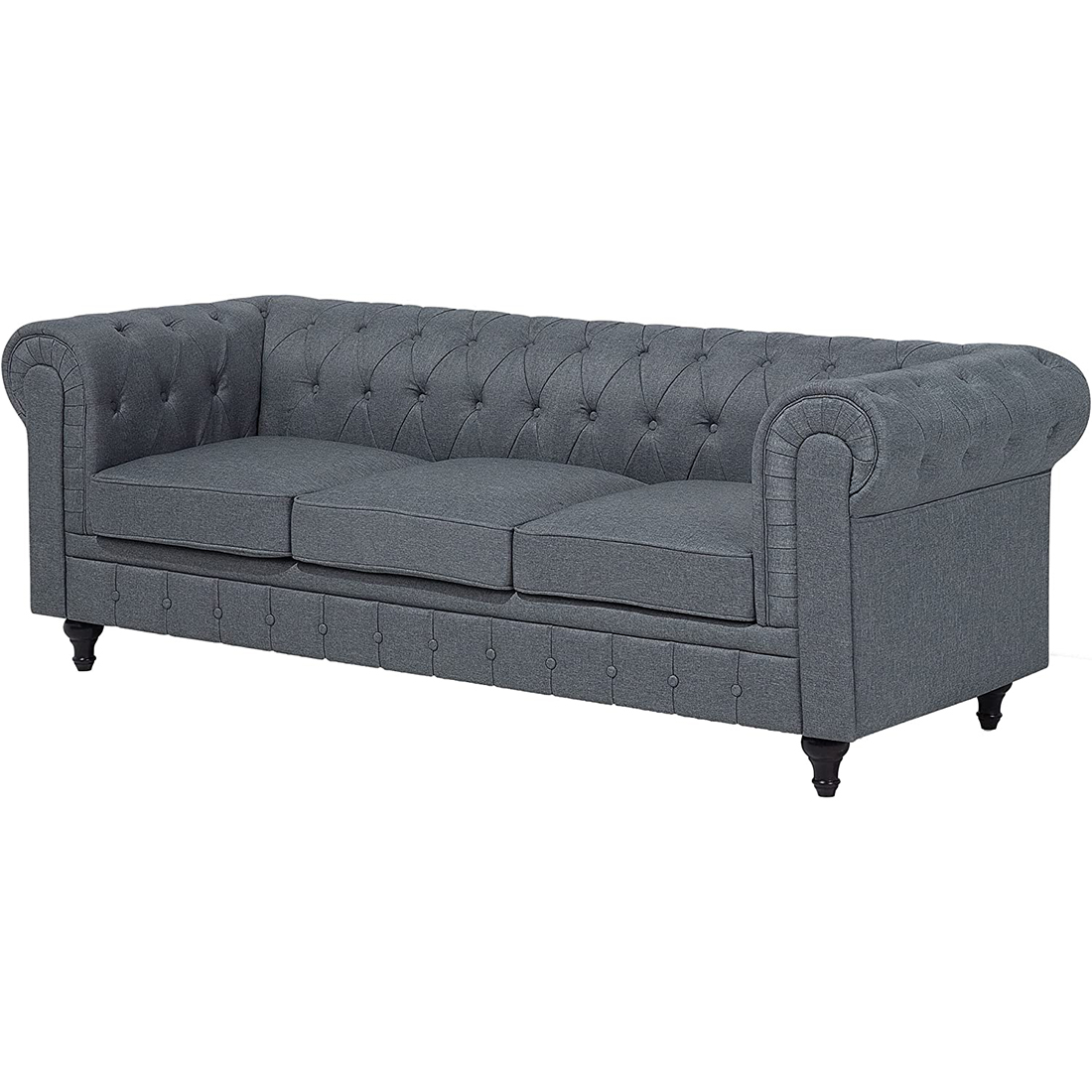 Beautiful button decoration and dark coloured wooden legs for an elegant look