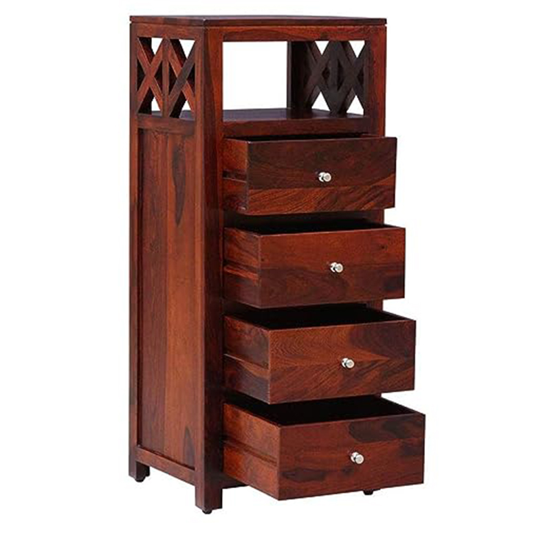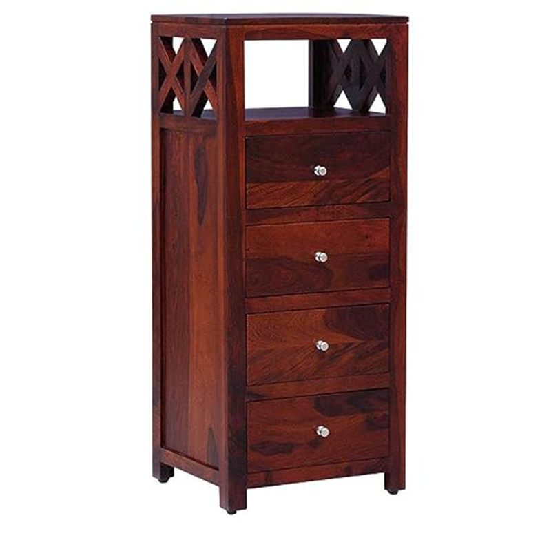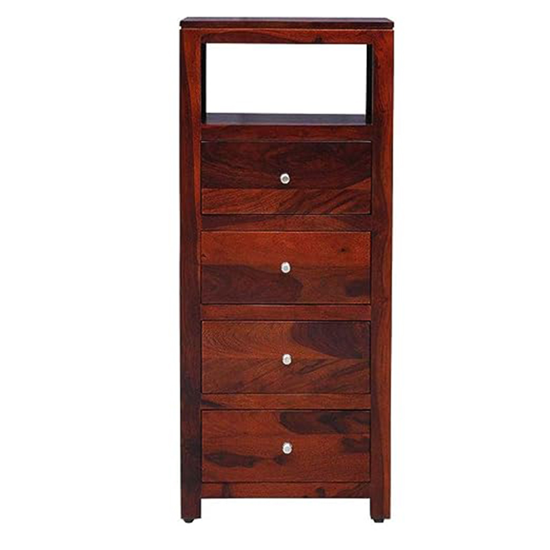 Product Material - Solid Sheesham Wood, Color - Red Mahogany, Chest Of Drawers with 4 Drawers