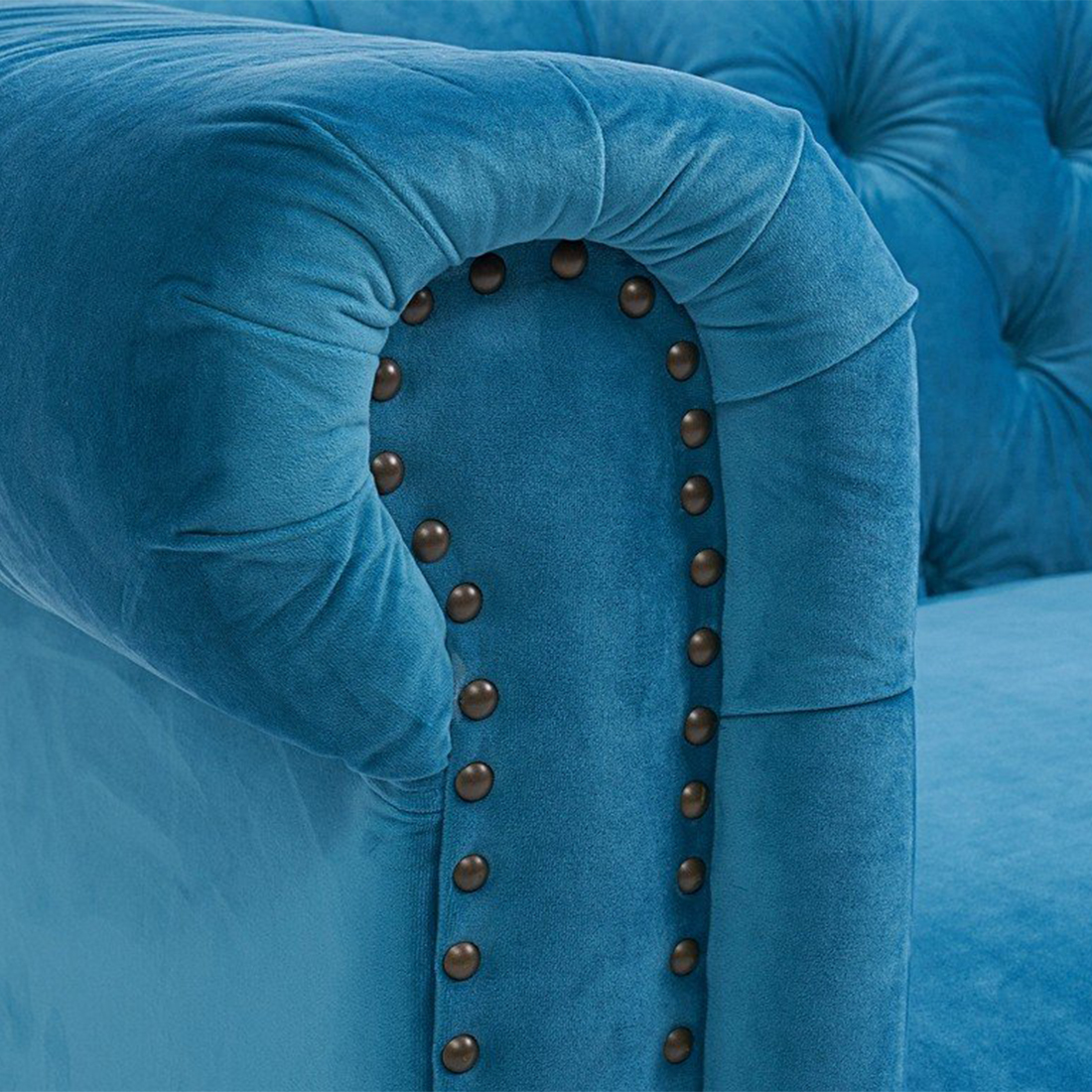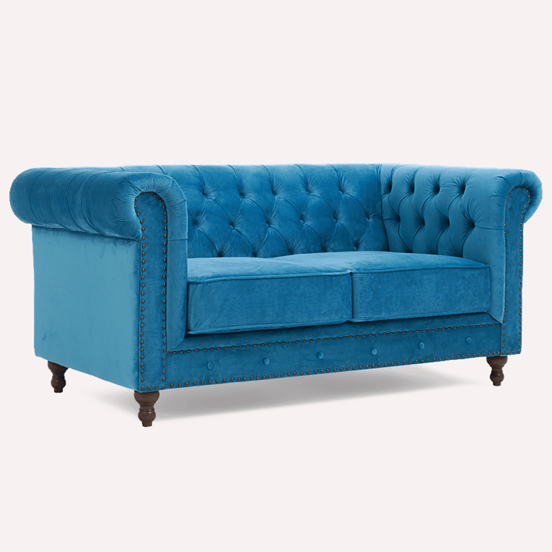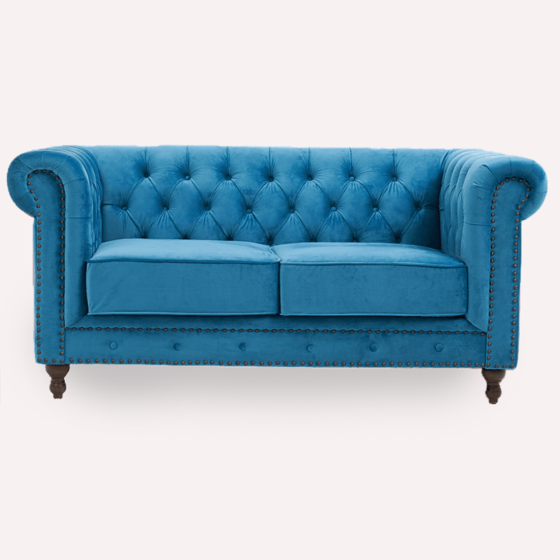 Manufactured with solid teak Wood Frame material. 40 PU density padding material gives you the comfort to sit and enjoy. Product seating capacity : 2 Product Dimension : 160cm X 78cm X 89cm (L X W X H) Maximum Load Capacity : 200 KG Product Weight : 70 KG Fabric : Velvet Arm Style: Round Arm Back Style : Tuffted Button NOTE: Color of the product may Slightly Vary to the original Product due to Pixel settings and camera quality. Please feel Free in contacting us.