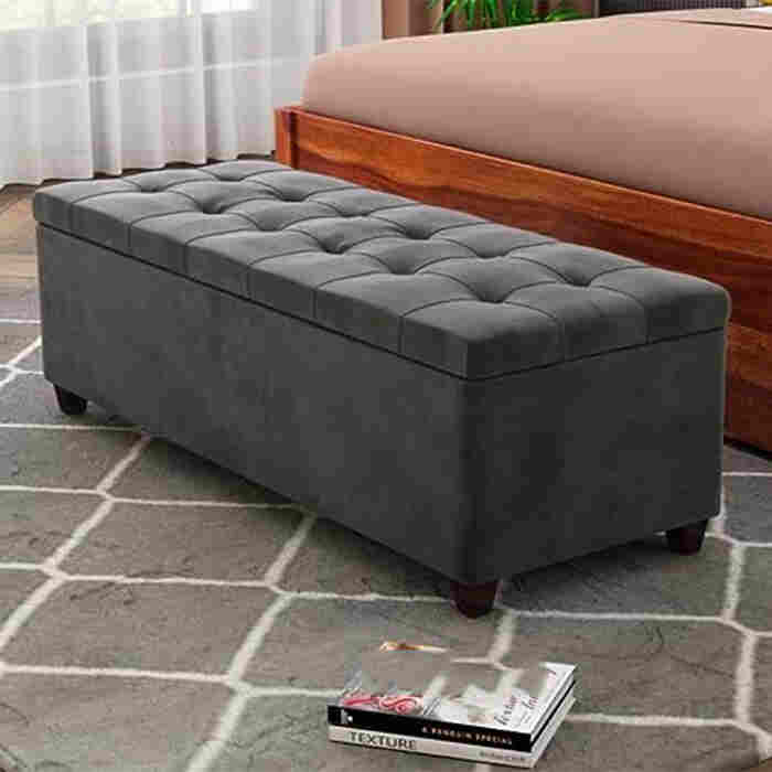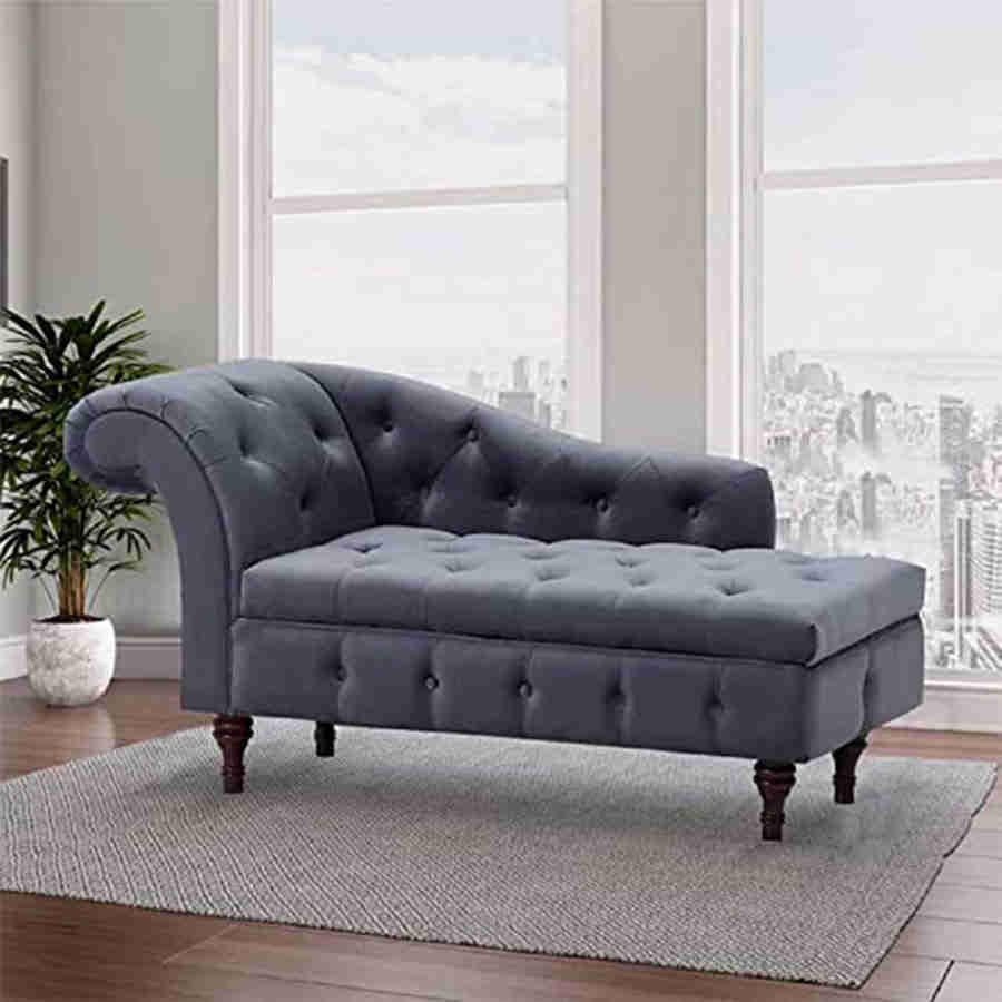 Chaise Storage Velvet Button Chaise Lounge with Storage